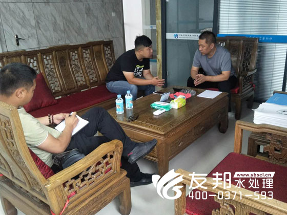 2019.4.25早上來自山西晉城的客戶來到我們鄭州友邦水處理設備有限公司。 我們張經理親自接待他們,帶他們參觀我們樓下的設備生產車間詳細講解友邦水處理設備的工藝流程以及生