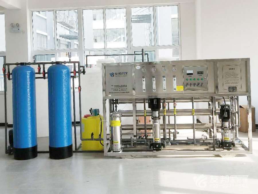 原水→原水加壓泵→多介質(zhì)過(guò)濾器→活性炭過(guò)濾器→加藥裝置→精密過(guò)濾器→第一級(jí)反滲透 →PH調(diào)節(jié)→中間水箱→第二級(jí)反滲透(反滲透膜表面帶正電荷)→純化水箱→純水泵→陰陽(yáng)樹(shù)脂混床→微孔過(guò)濾器→用水點(diǎn)