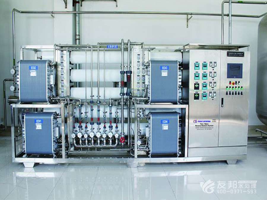 2、預處理→反滲透→中間水箱→水泵→EDI裝置→純化水箱→純水泵→紫外線殺菌器→拋光樹脂→0.2或0.5μm精密過濾器→用水對象(≥18MΩ.CM)(最新工藝)